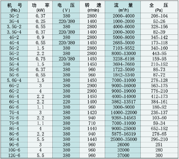 常用離心通風(fēng)機(jī)系列